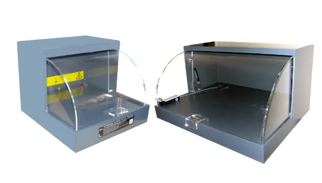 Ergänzend zu den Prüfgeräten SEFELEC 5x, RMG und SYNOR ermöglicht diese Kammer sichere Prüfungen unter Hochspannung.